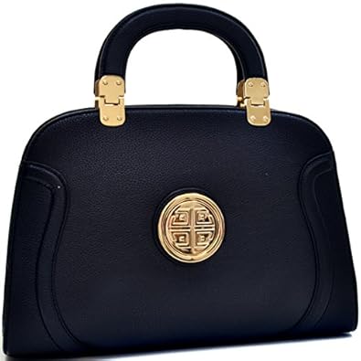 Image Name: Designer Inspired Faux Leather Handbag w Gold Tone Center Emblem